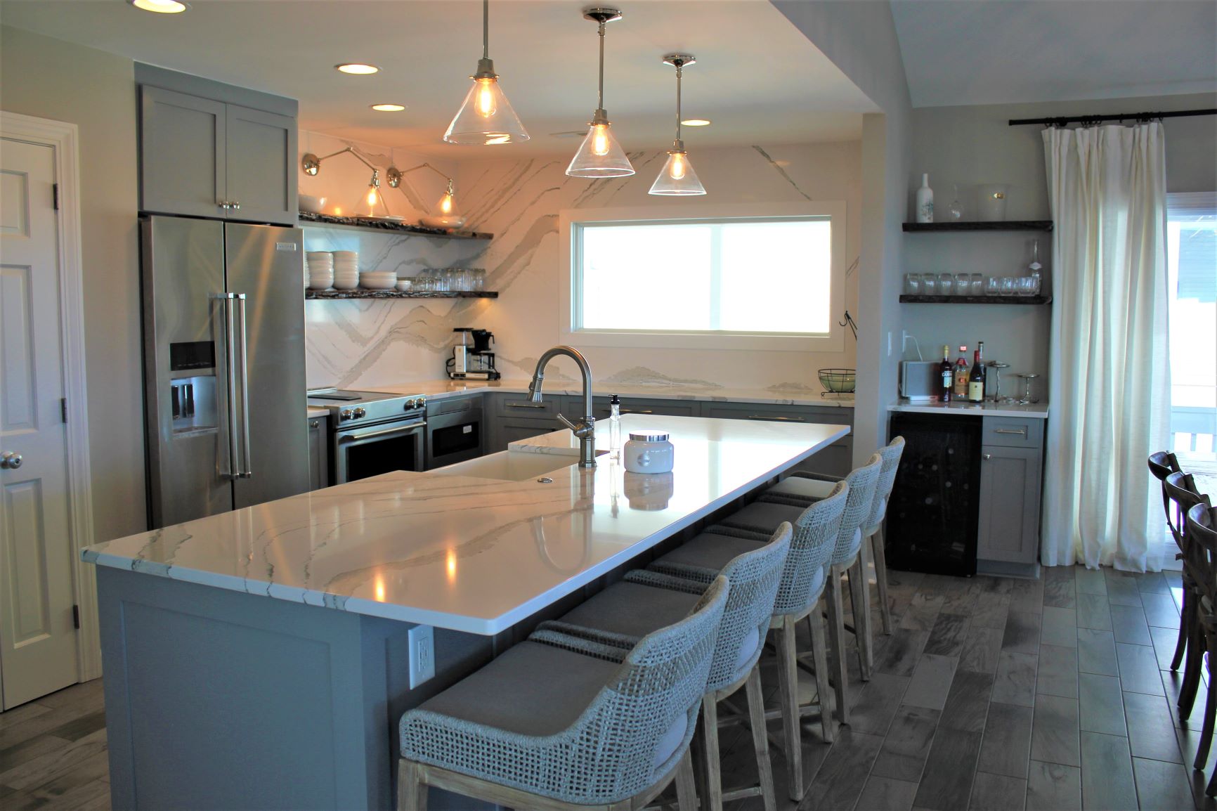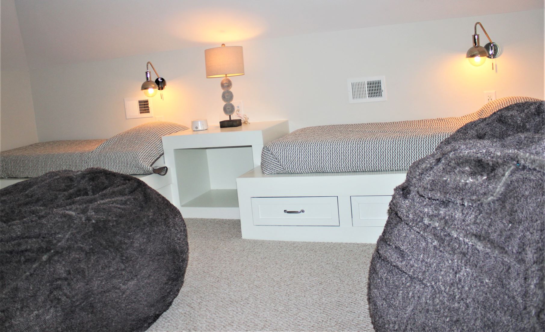 4 BR/4BA The first/ground level has a living room with dining space, laundry room, and one bedroom (Bunk bed & King) with a bathroom. The second level has the main living, kitchen, dining area. There are 3 bedrooms (King, Queen, Queen) and 3 bathrooms. Also, bonus loft space (3 singles) great for kids. The second level has an infinity outdoor deck with both covered and open area with full ocean view and views of the sound. Maximum 10Amenities