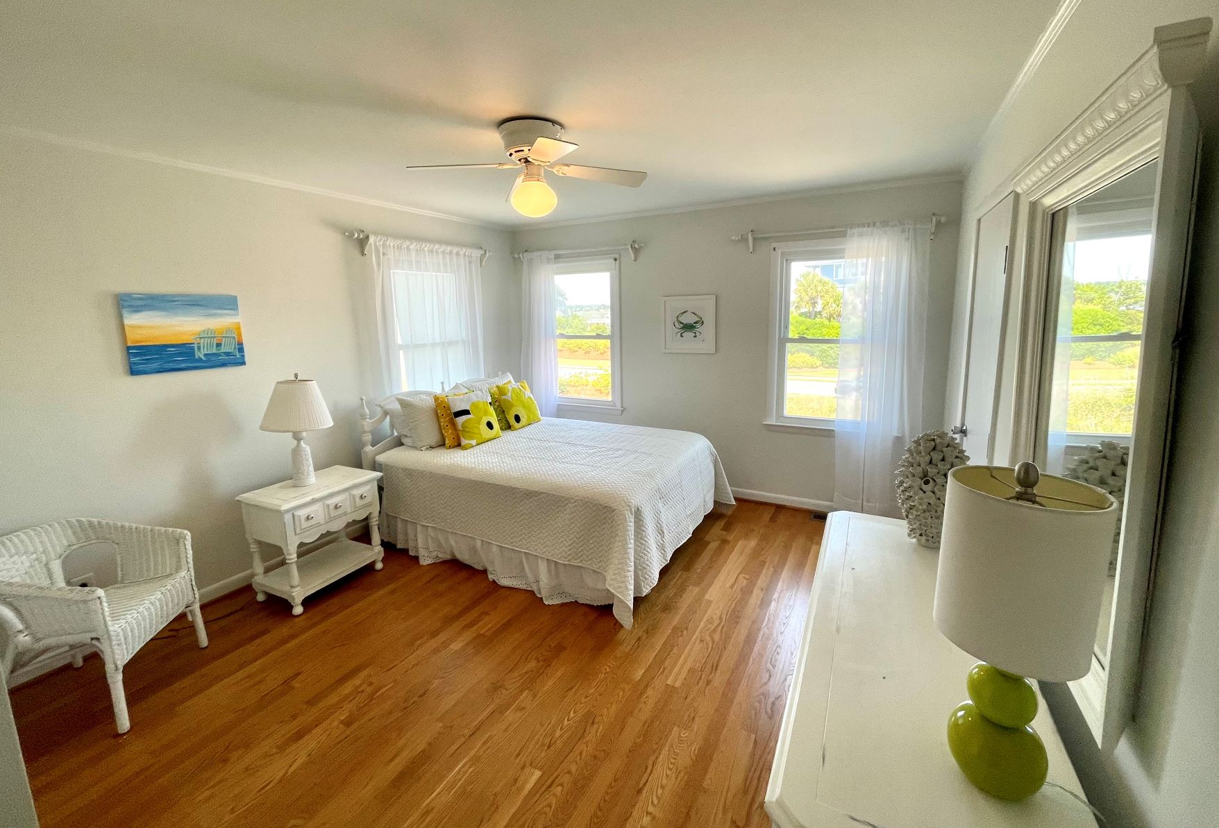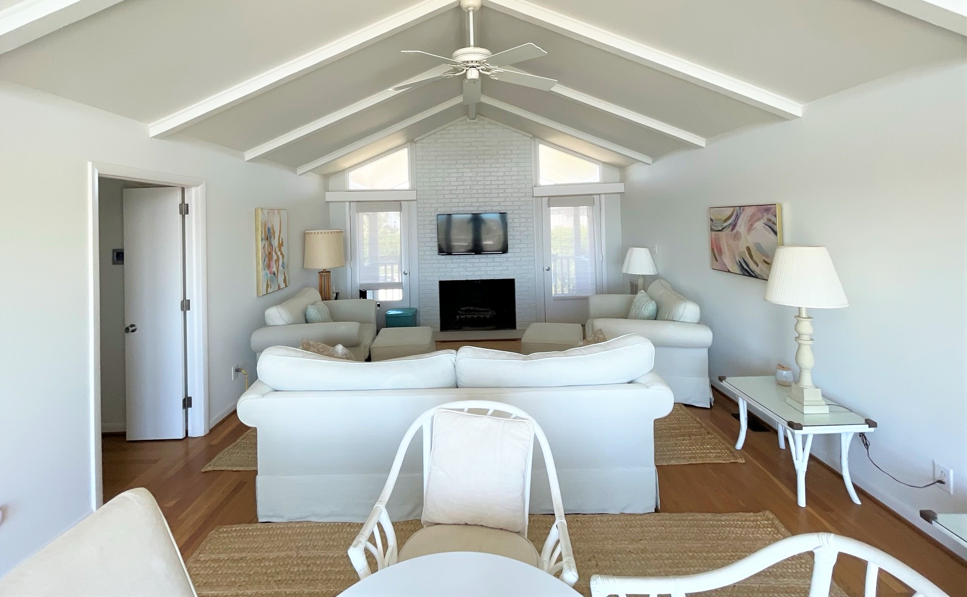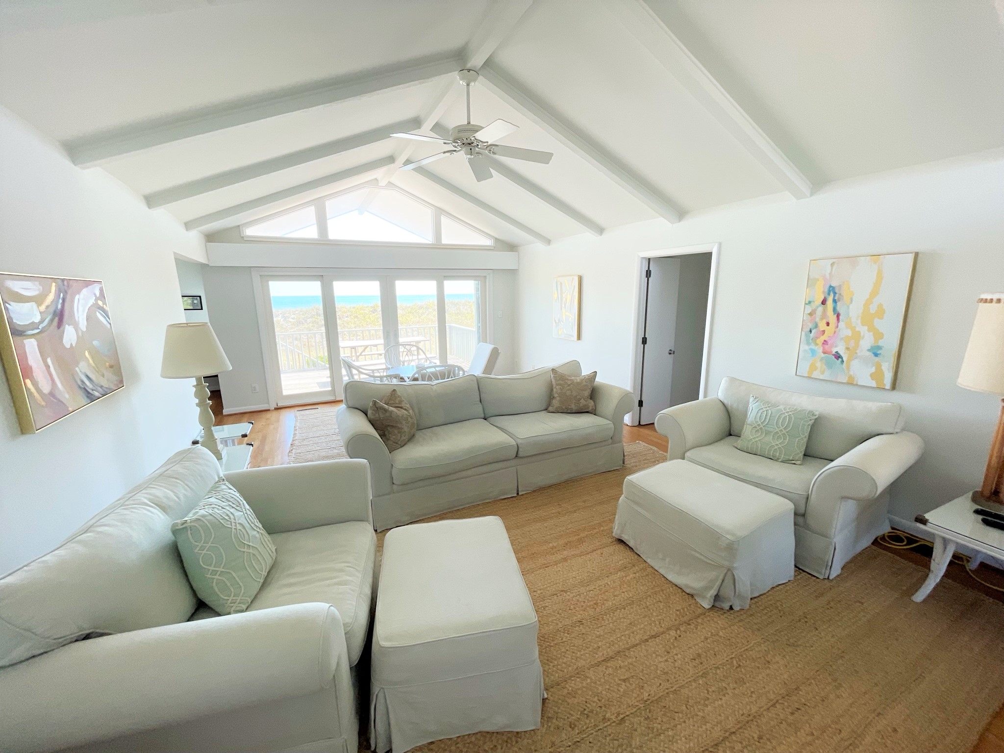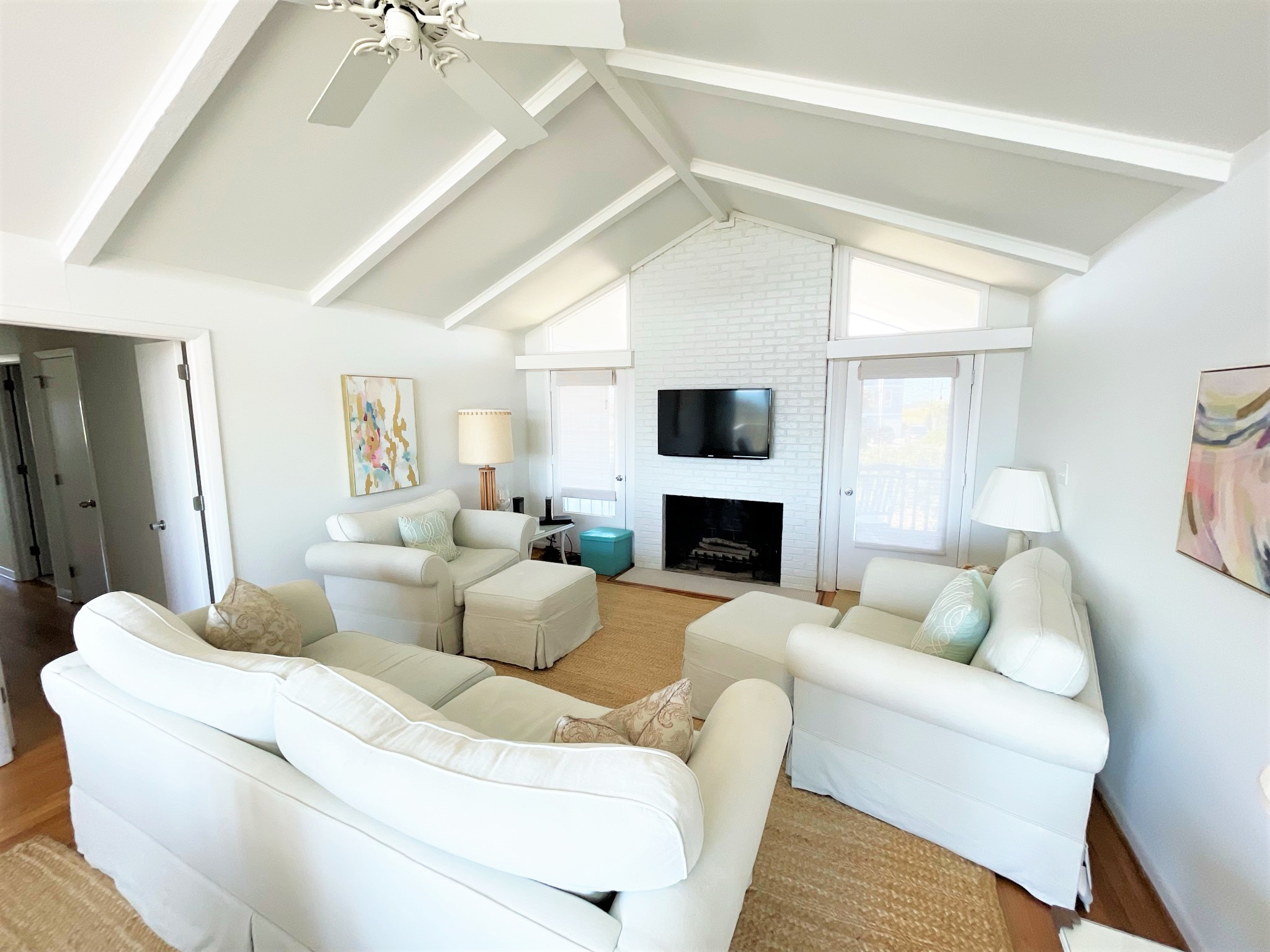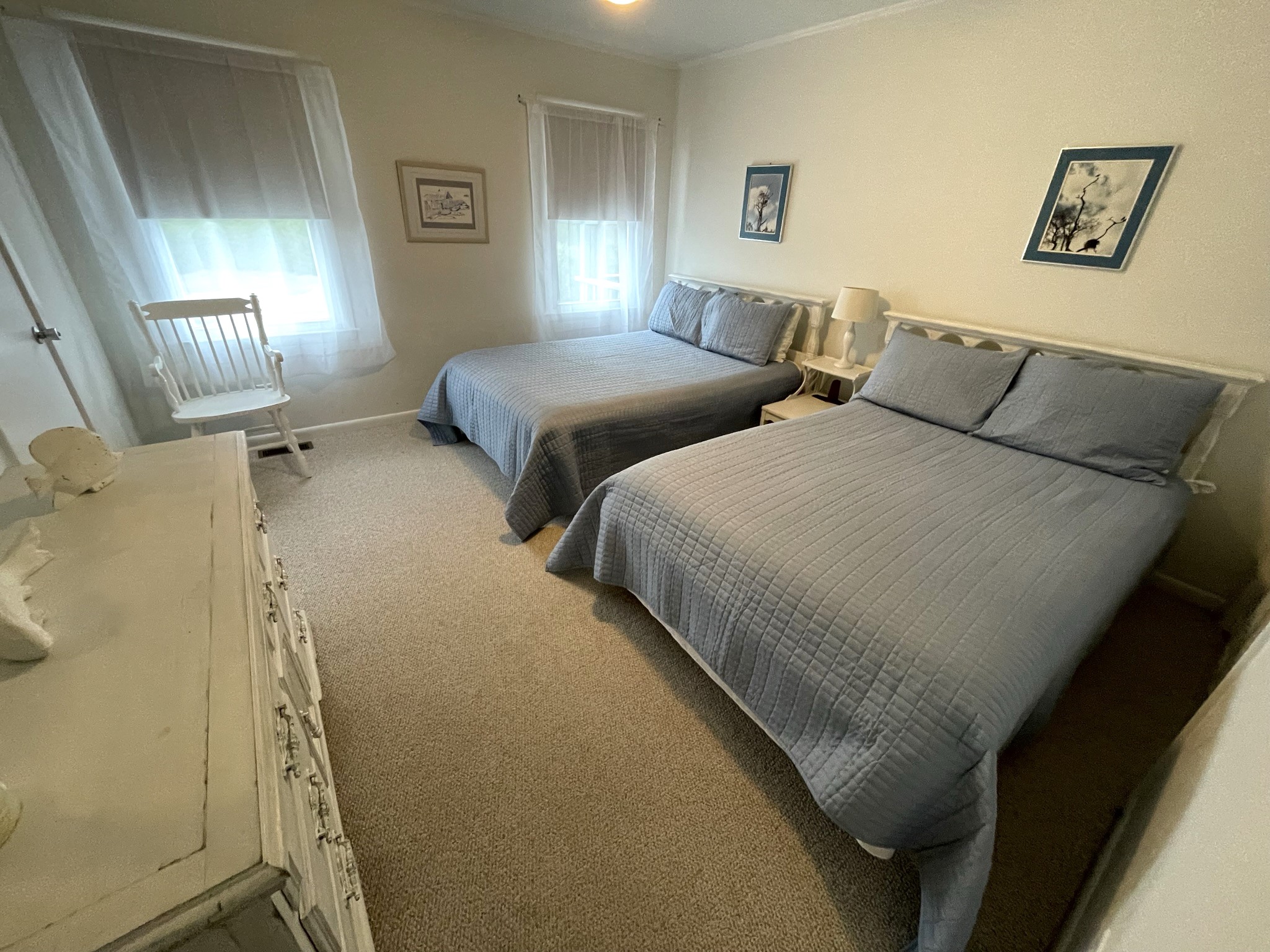 4BR/2BA This Oceanfront home is all on one level with 4 bedrooms and 2 full baths. There are 2 bedrooms on the ocean side (King, Queen) which share a hall bath and 2 bedrooms on the soundside (Queen, 2 extra long doubles) which share a hall bath. The living room is in the center of the home with ocean and sound side views. The kitchen and dining areas are combined, opening onto the living area. There are both ocean and sound side decks. Note: this home does not have direct beach access. The Public Beach Access is located next door to the property. There are both ocean and sound side decks. Maximum 8Amenities