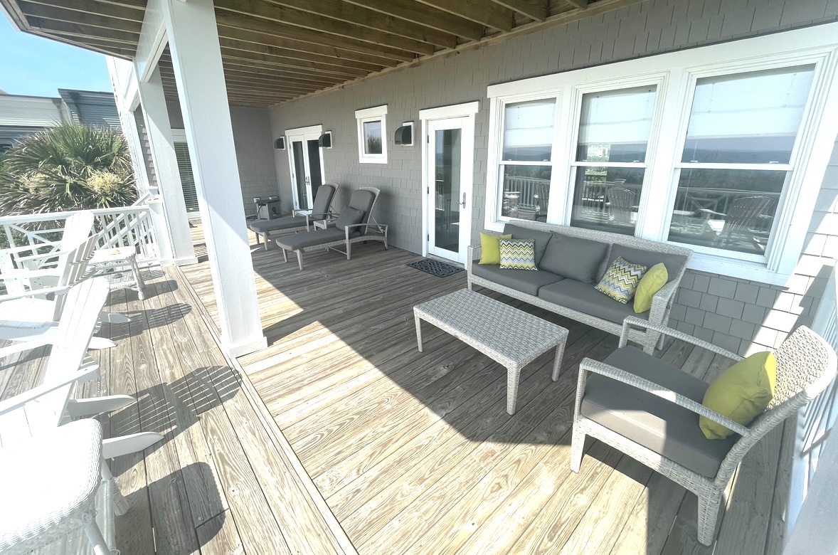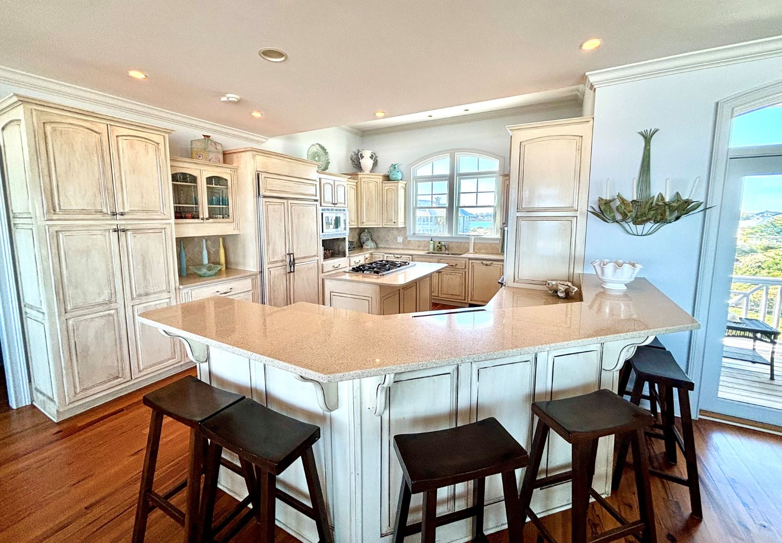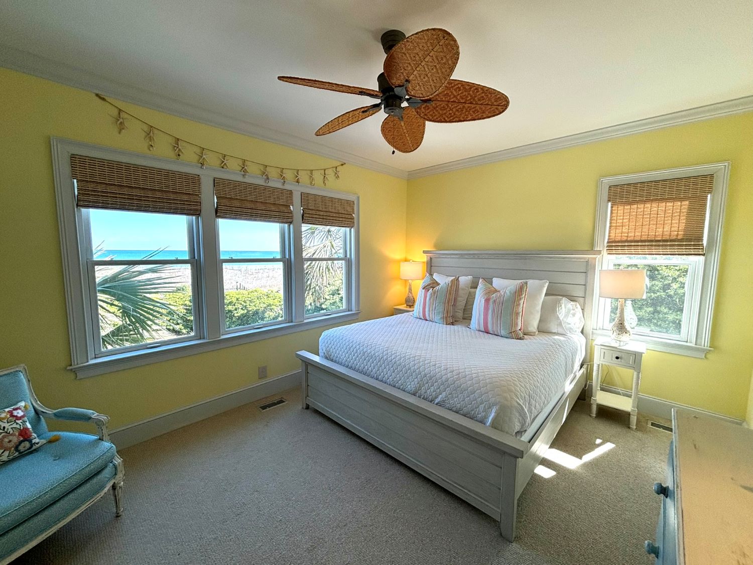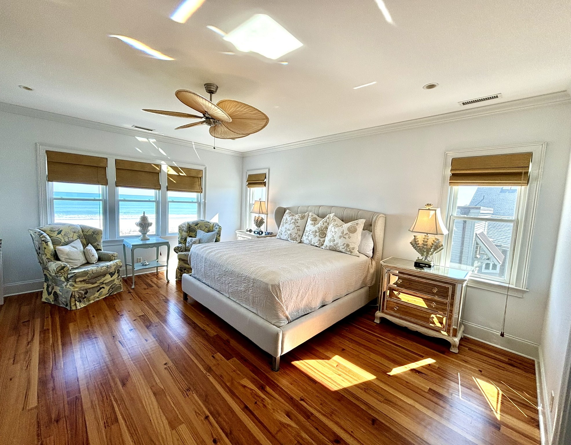 6 bedroom oceanfront home. 1st level has 4 bedrooms with 3 baths, (King, Queen, Queen, two twins- can be made to King upon request). 2nd level has 1 Master bedroom with 1 1/2 baths, (king). 3rd level has 1 bedroom with 1 bath (2 sets of bunks and 2 twins).Amenities