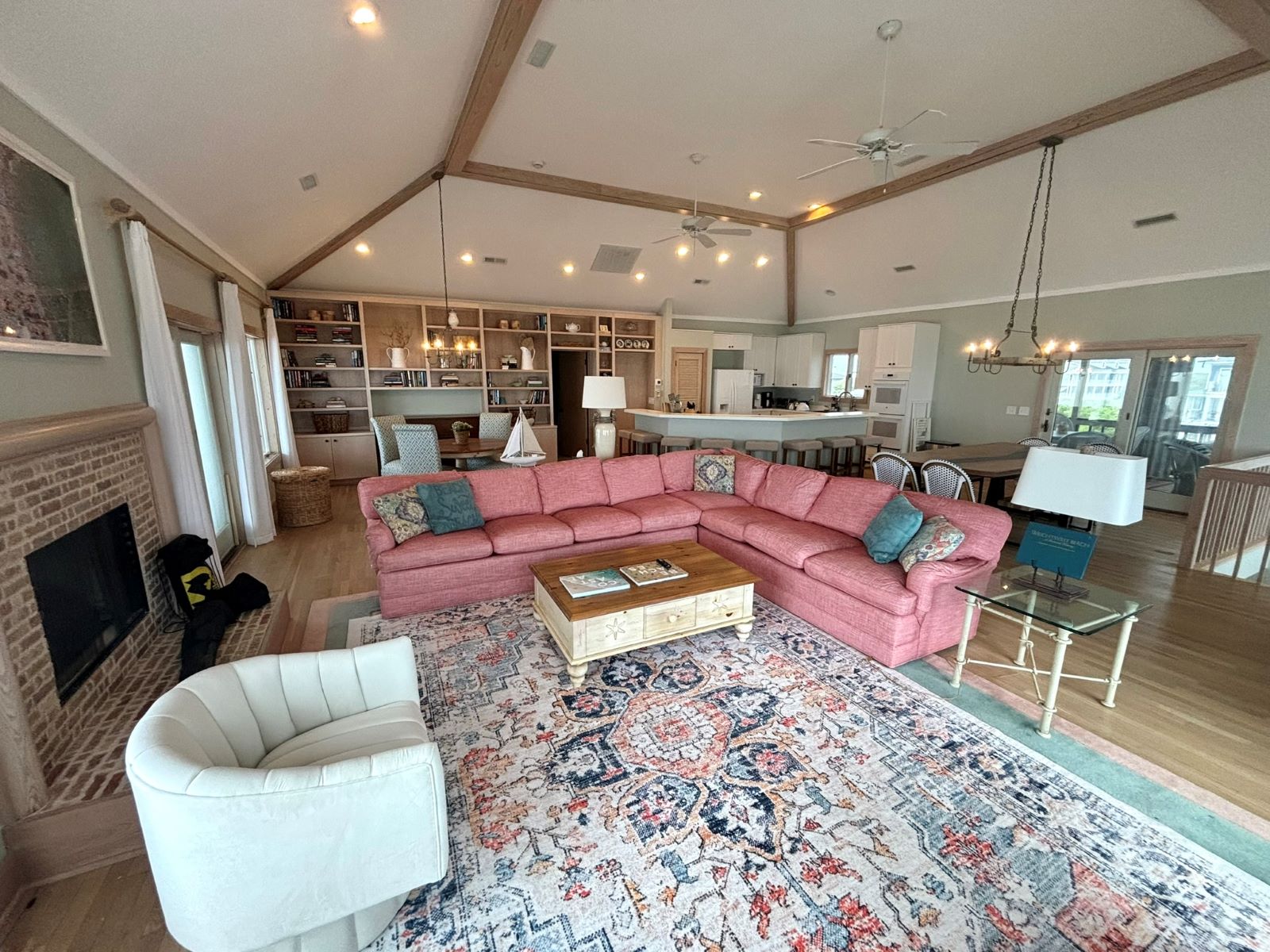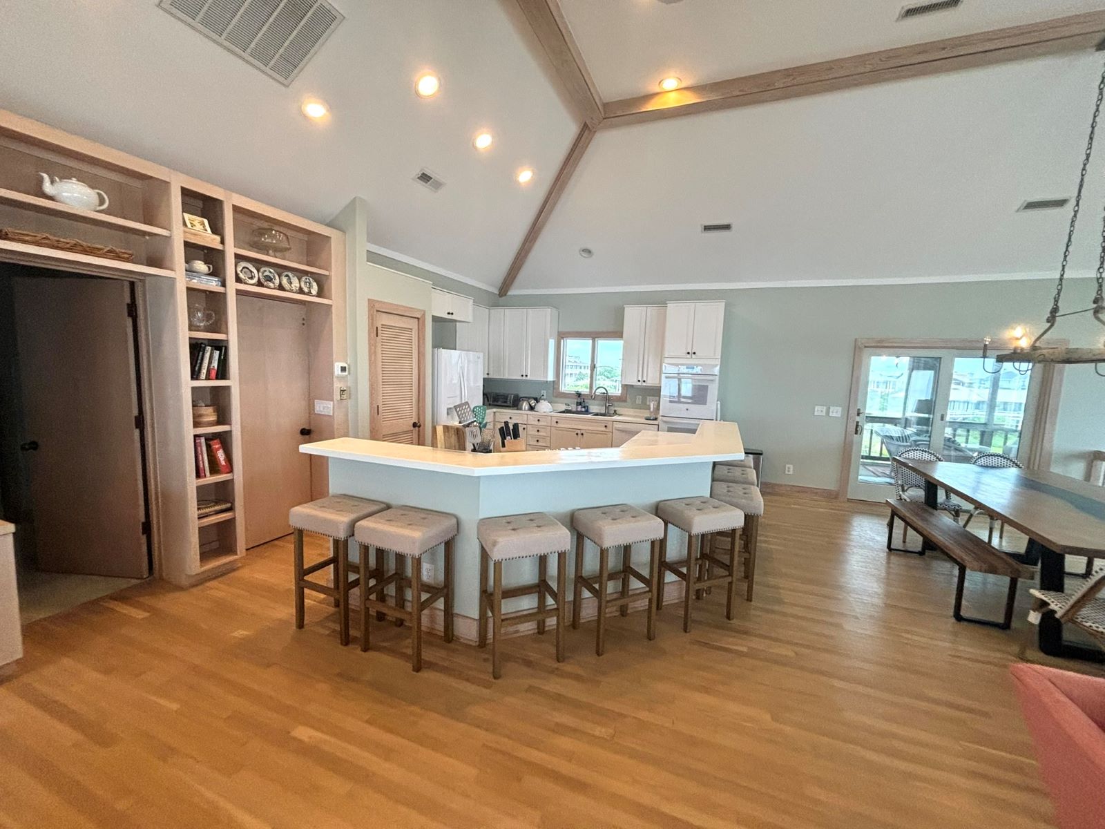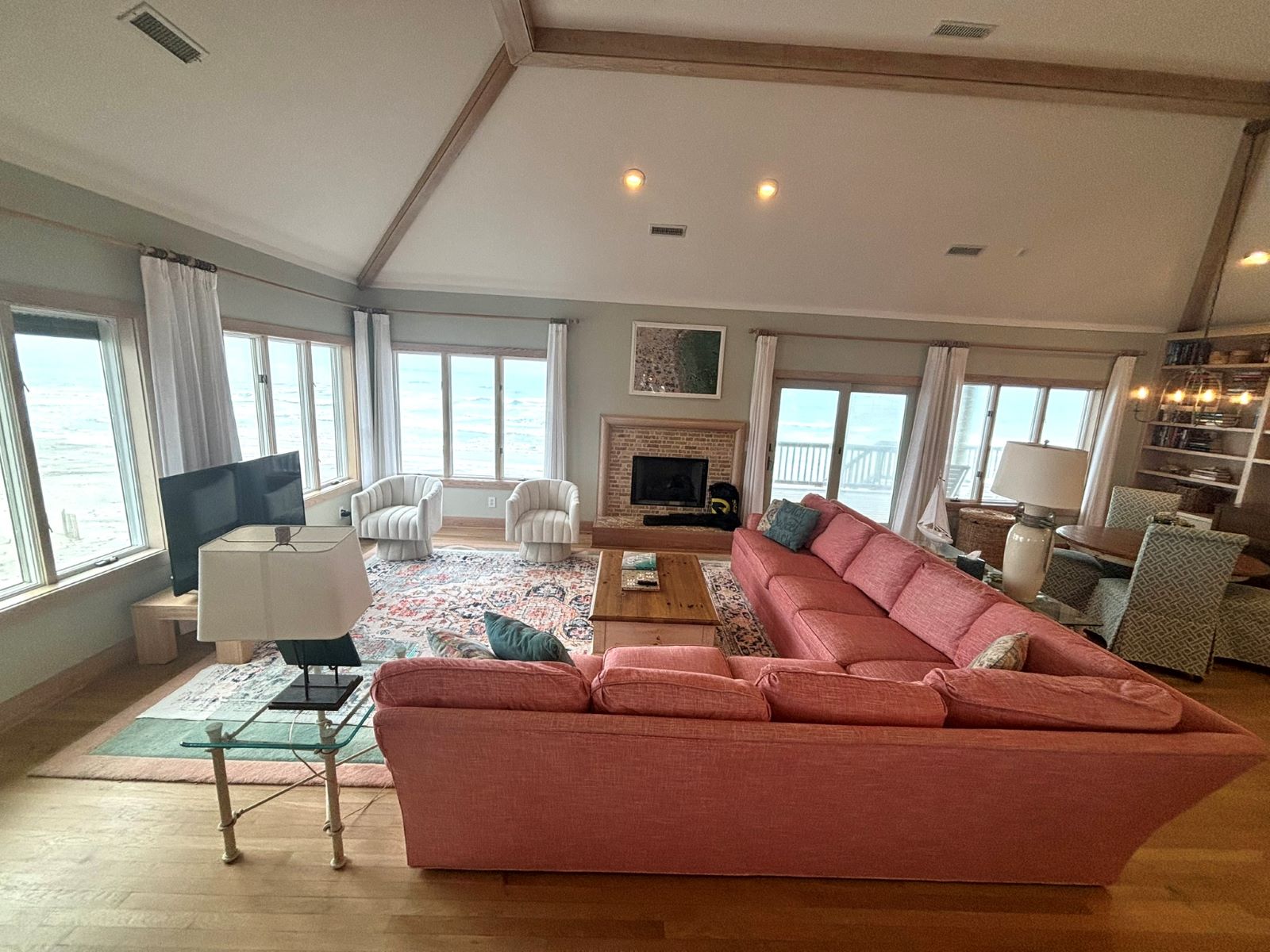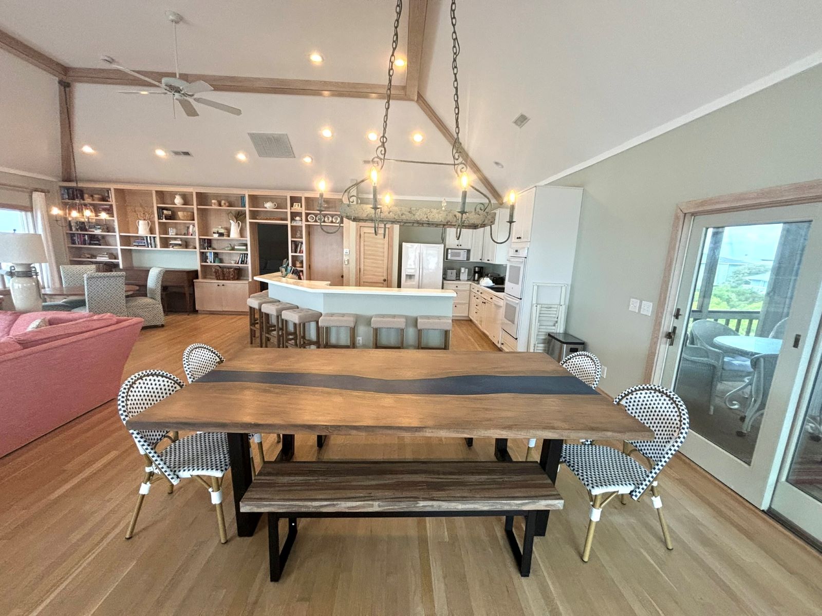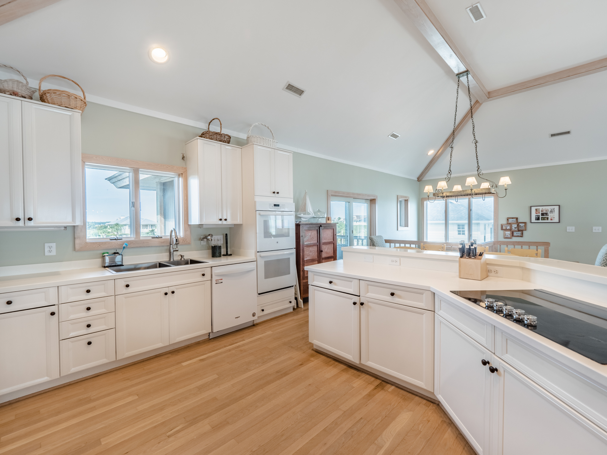 4BR/4.5BA Ocean Front. Upper level has open living, dining, kitchen, half bath and master bedroom (King) with private bath. Lower level has 3 bedrooms (King) with private bath (Queen and triple bunk, King) that share Bath. This level also offers a bonus room with a King bed and bath. Maximum 10Amenities