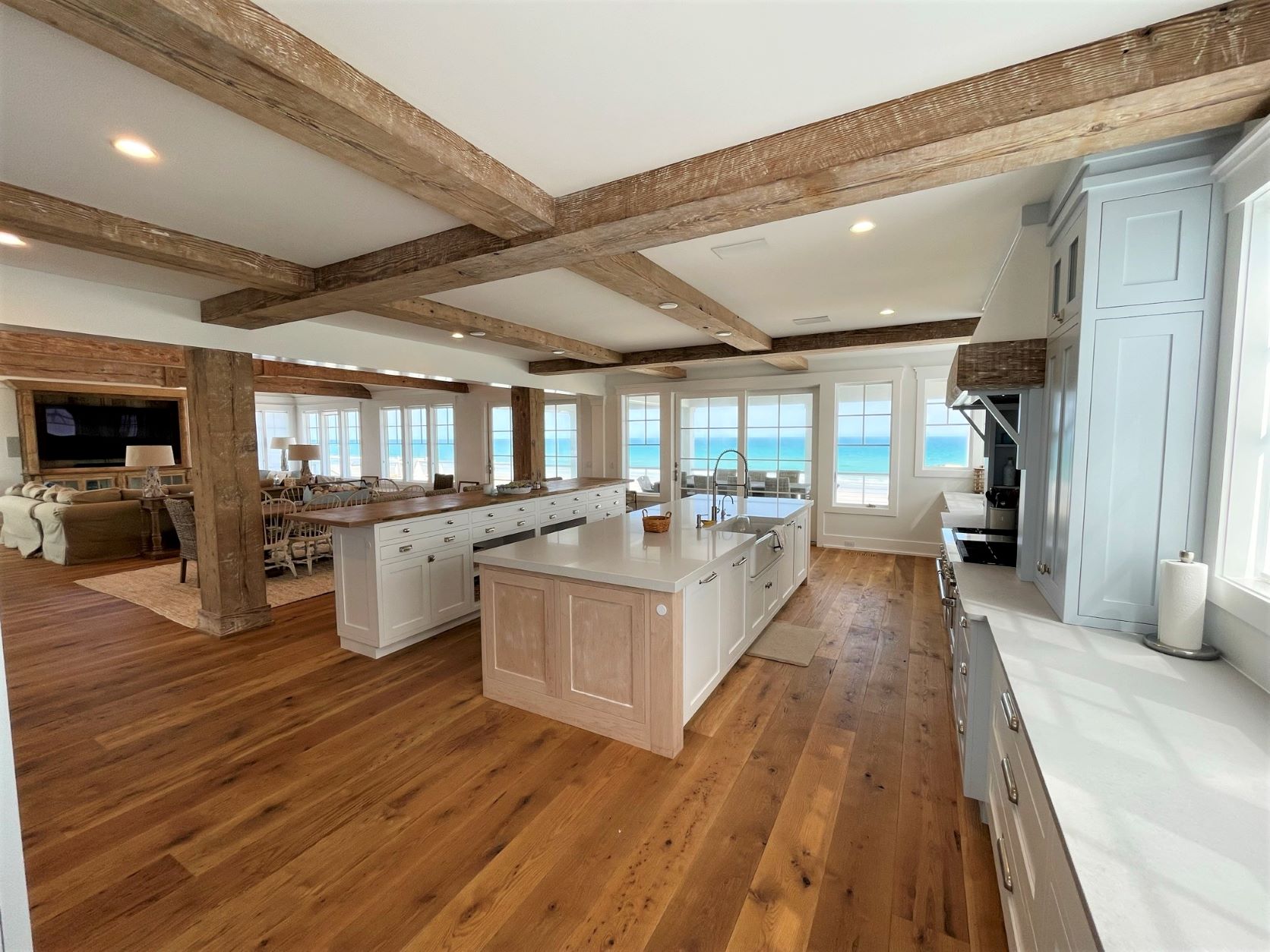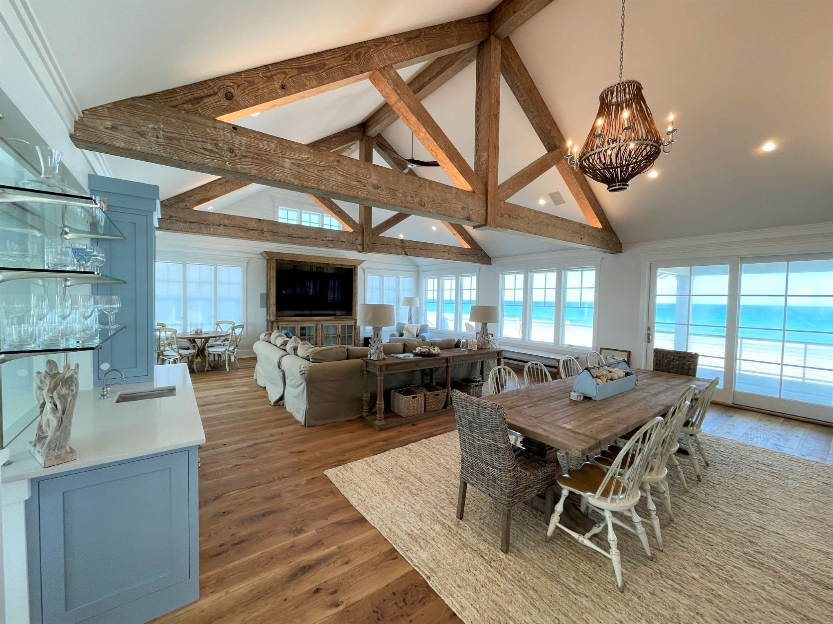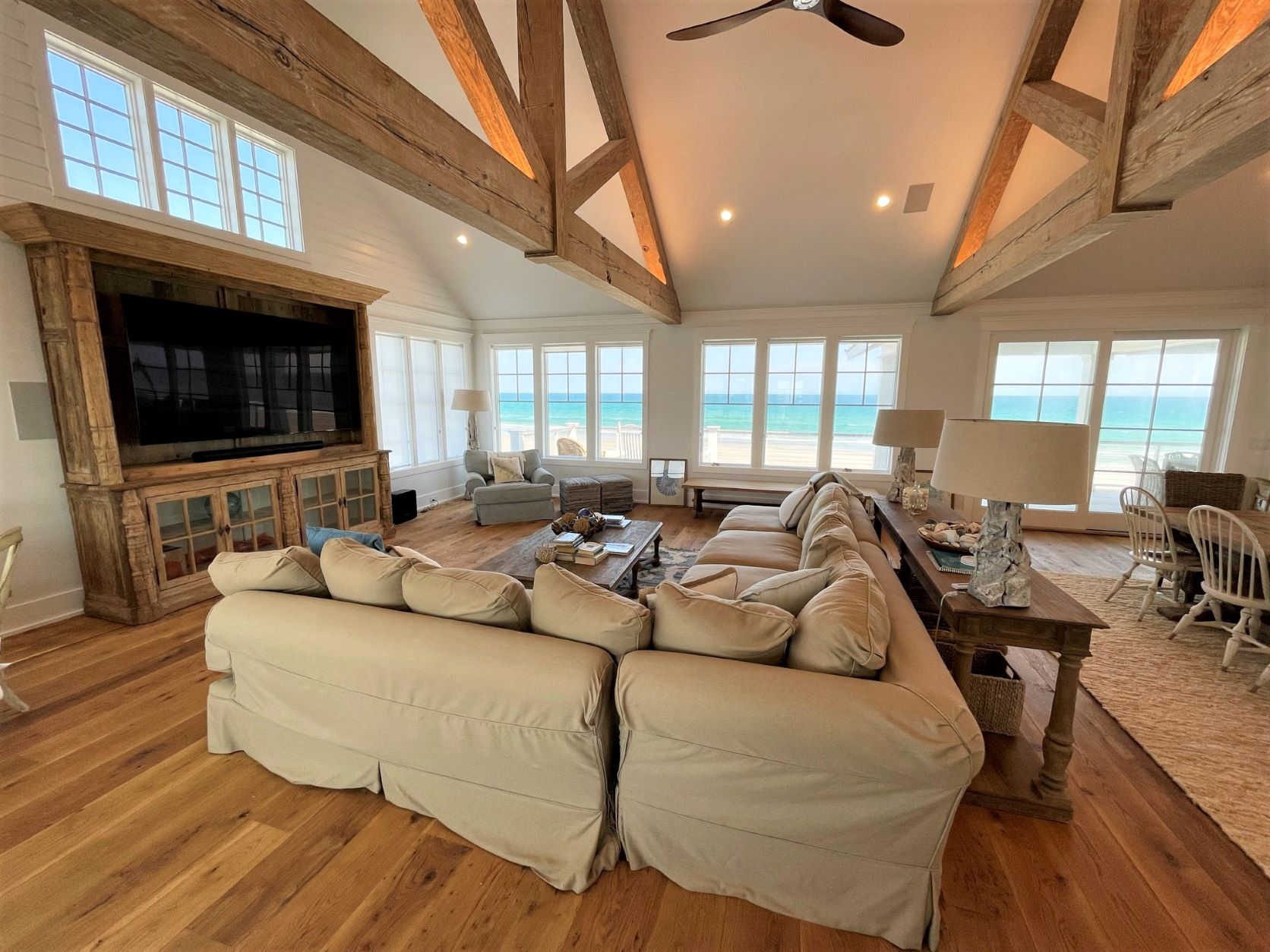 6BR/5 Full BA/3 Half BA Ocean Front. The first level includes a den, laundry room, half bath. Along with 5 bedrooms (Bunk room [Queen/ Single], Queen) that share a full bath. (King, Queen, Queen,) all with full baths. The second level of this home offers open living room, dining and kitchen with a half bath. Third level is the master suit (King) with private bath. Maximum 13Amenities