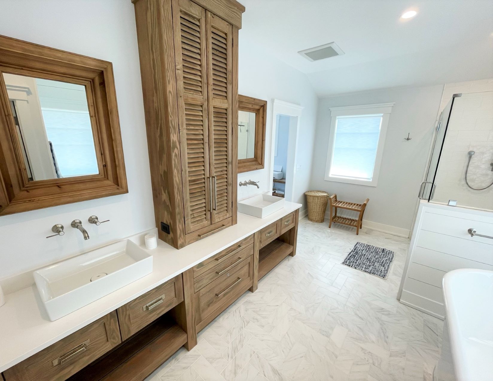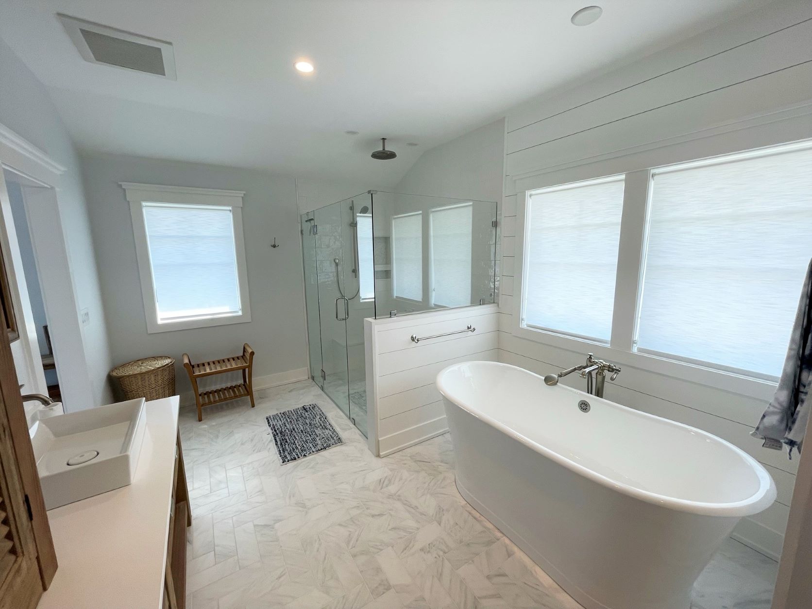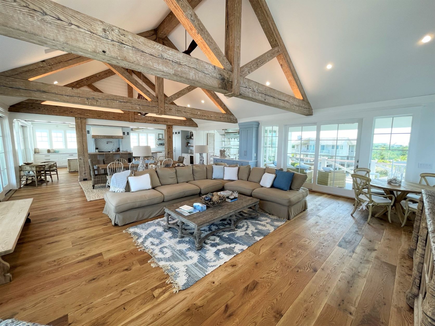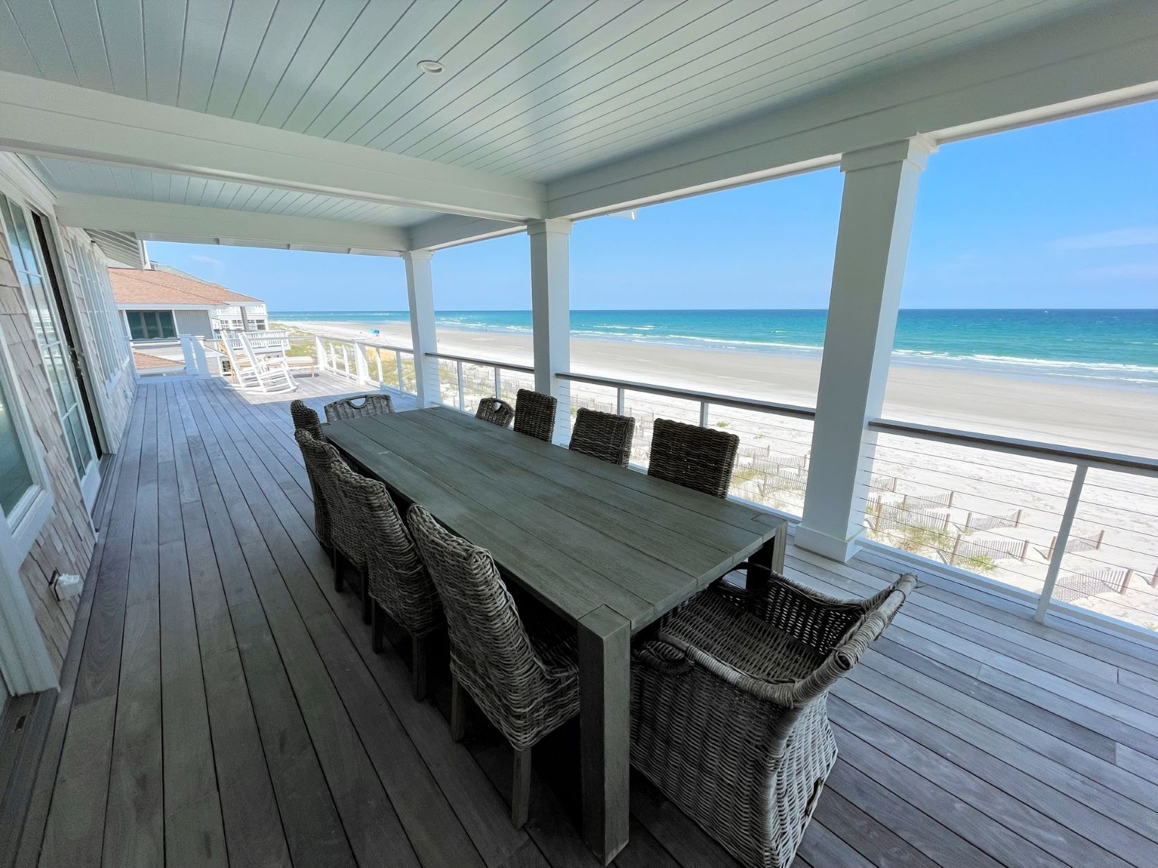 6BR/5 Full BA/3 Half BA Ocean Front. The first level includes a den, laundry room, half bath. Along with 5 bedrooms (Bunk room [Queen/ Single], Queen) that share a full bath. (King, Queen, Queen,) all with full baths. The second level of this home offers open living room, dining and kitchen with a half bath. Third level is the master suit (King) with private bath. Maximum 13Amenities